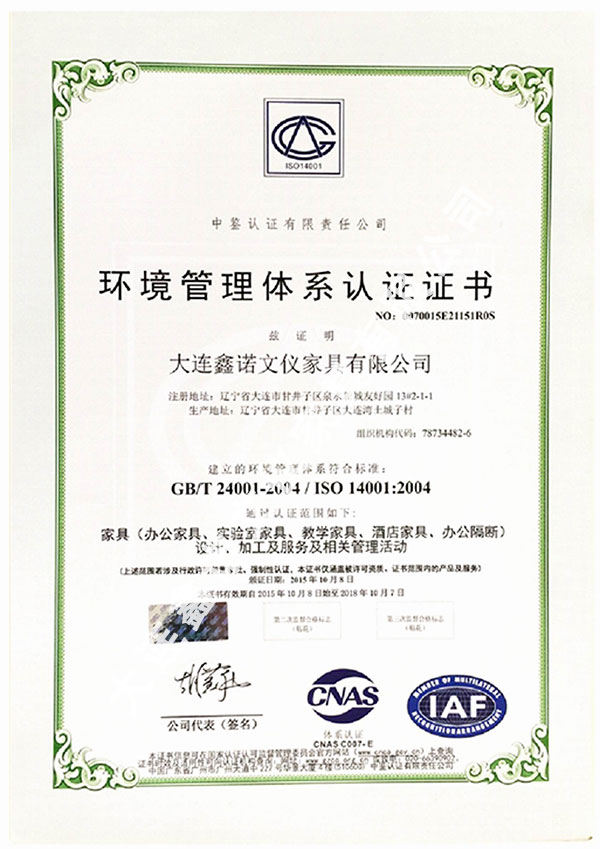 大連鑫諾文儀家具有限公司總部位于中國的北方明珠-大連。公司以教育設備,家具裝飾裝修為主導產業。經過近10年的發展,又涉及科學實驗設備工程、教育裝備工程、圖書館裝備工程、教學儀器等各類家具的生產與研發。 公司建設了大型生產基地,總面積超過一萬平方米,員工150多人。經全體員工多年的不懈努力,公司已發展成為在大連、沈陽擁有多家公司和生產基地,并在國內擁有多家聯營公司的科、工、貿為一體的綜合性實業企業。 鑫諾家具實業已通過ISO9001:2000國際質量管理體系認證,ISO14001:2004國際環境管理體系認證。公司堅持走品牌發展路線。旗下產品和服務有“家具名牌”“家具著名品牌”等多項榮譽。其品牌大部分已遍布東北三省、山東省等地,涉及十幾個行業等上萬家企業單位和高校